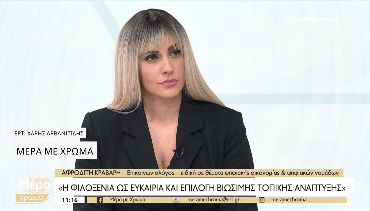 Εκπομπή SKAITV Τα νέα των μικρομεσαίων επιχειρήσεων | Τι είναι οι ψηφιακοί νομάδες; Καλεσμένη του Αντώνη Κρητικού, η Αφροδίτη Κράβαρη – Επικοινωνιολόγος / Branding & Communication Architect.   Οι digital ...